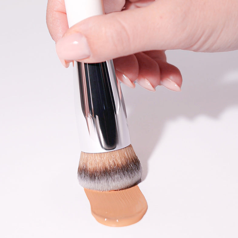Le setole fitte e morbide permettono di stendere e fissare il prodotto sul viso in modo uniforme per ottenere la copertura desiderata.