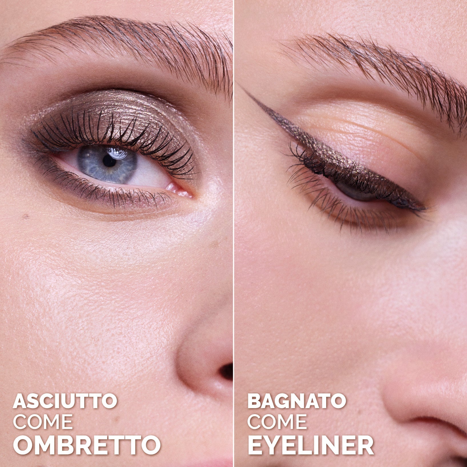 È la mini-palette ombretto-eyeliner wet & dry dal finish metallizzato. I due colori possono essere utilizzati da asciutti come ombretti oppure bagnati per creare un eyeliner.